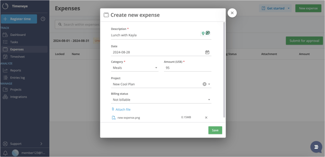 With the New Expense button, you can add the expense and fill in all the required information.